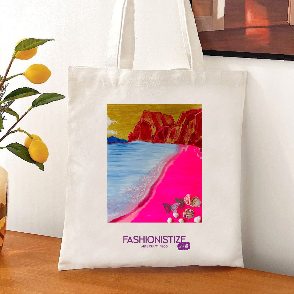 The Pink Sand Beach Series – Medium Canvas Bag is inspired by the serenity of coastal landscapes and the gentle beauty of pink-hued shores. This artwork reflects tranquility, freedom, and the soothing rhythm of the sea—capturing a moment of escape and inner peace.